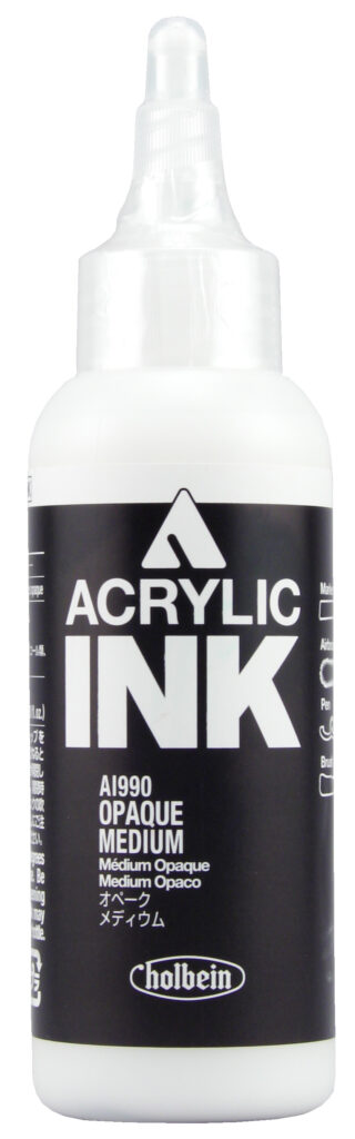 Mixing Holbein’s Opaque Medium with acrylic ink will increase the opacity and give your artwork a smooth matte finish. This Opaque Medium can be used with other paints and mediums in the Holbein Acrylic series.