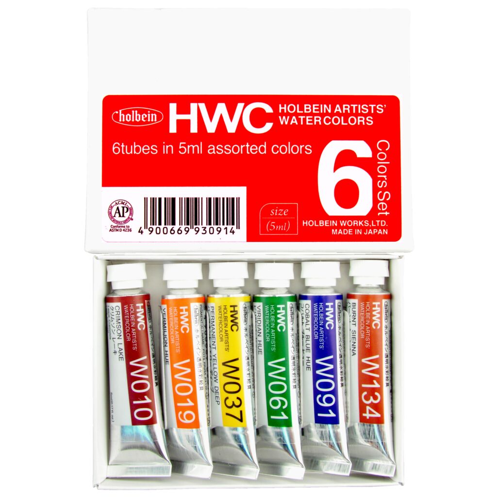 Holbein Artists’ Watercolor Sample Set of 6 Assorted Colors in 5ml Tubes